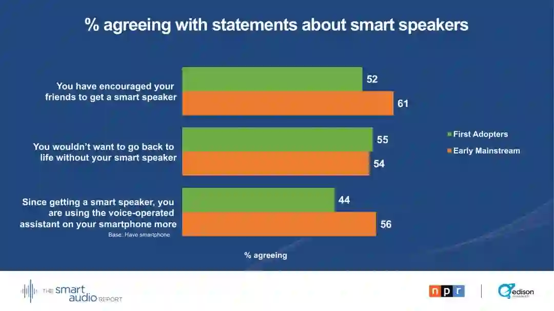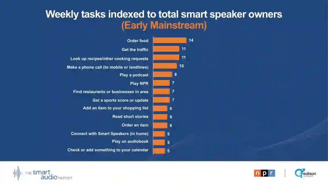 “在拥有智能音箱至少一年的家庭中,它们现在是消费音频内容的头号设备。这对媒体和广告界的任何人都有深远的影响。对数百万美国人来说,智能音箱才是真正的新收音机。”----爱迪生研究公司高级副总裁汤姆·韦伯斯特