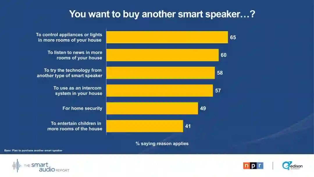 这个智能音频报告基于对909名18岁以上的美国人进行的全国性在线调查,这些人表示他们至少拥有一个智能音箱。