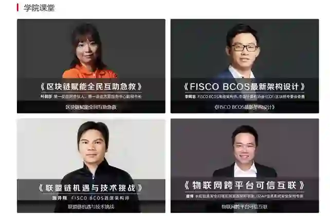 技术培训有线上课程和高校课程。线上课程平台的公共课程,例如CSDN学院、FISCO BCOS开源社区联合人民网慕课开办的区块链学院。