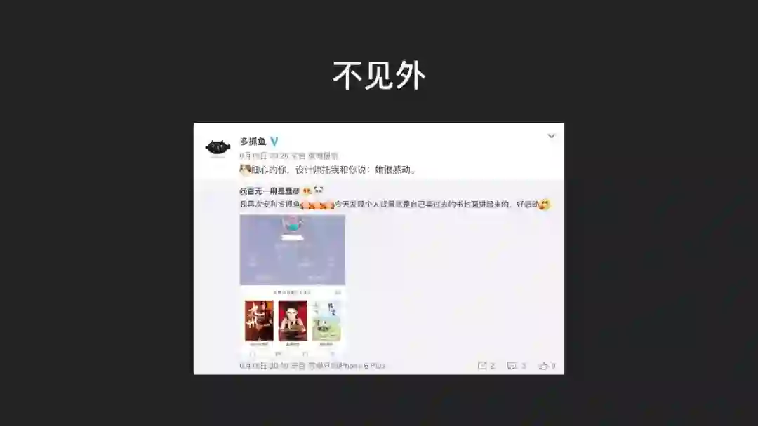 互撩。有些用户也是很幽默的,你跟他开玩笑,他也会找你开玩笑,每天可能会看到很多段子。我们会用即刻订阅微博上所有提到关键字多抓鱼的内容,天天会看用户在微博上怎么说我们。