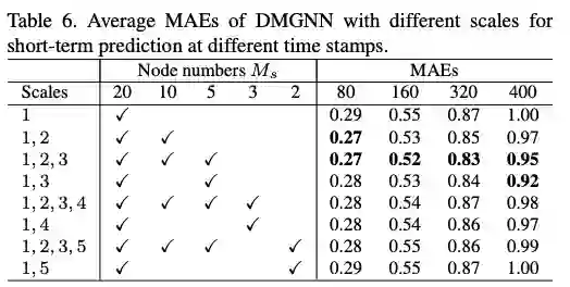 在短期预测中,可以超过绝大多数state-of-the-art方法。在长期预测中,DMGNN可达到十分具有竞争力的表现。