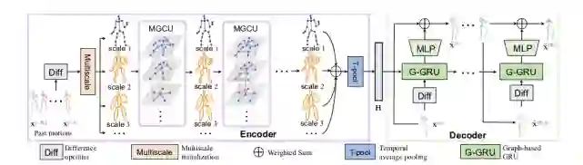 编码器的核心是一系列基本组分「多尺度图计算单元」(MGCU),解码器核心是「基于图的门控循环单元」(G-GRU)。