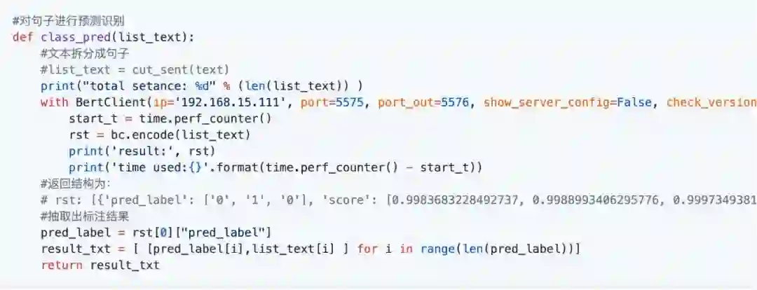 API服务端的核心方法,是与BERT-Serving进行通讯,需要创建一个客户端BertClient:
