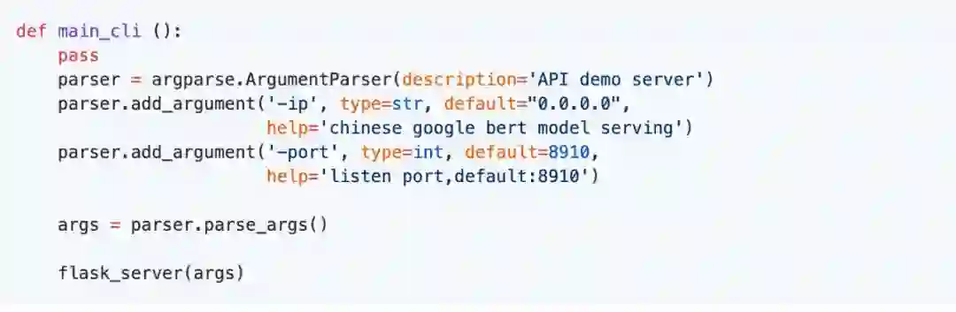 注意:port 和 port_out 这两个参数是API调用的端口号, 默认是5555和5556,如果你准备部署多个模型服务实例,那一定要指定自己的端口号,避免冲突。我这里是改为:5575 和 5576