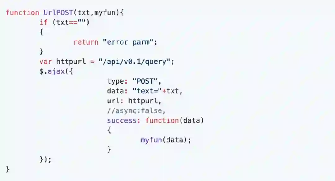 这里的接口简单规划为/api/v0.1/query, 使用POST方法,参数名为'text',使用JSON返回结果;路由配置: