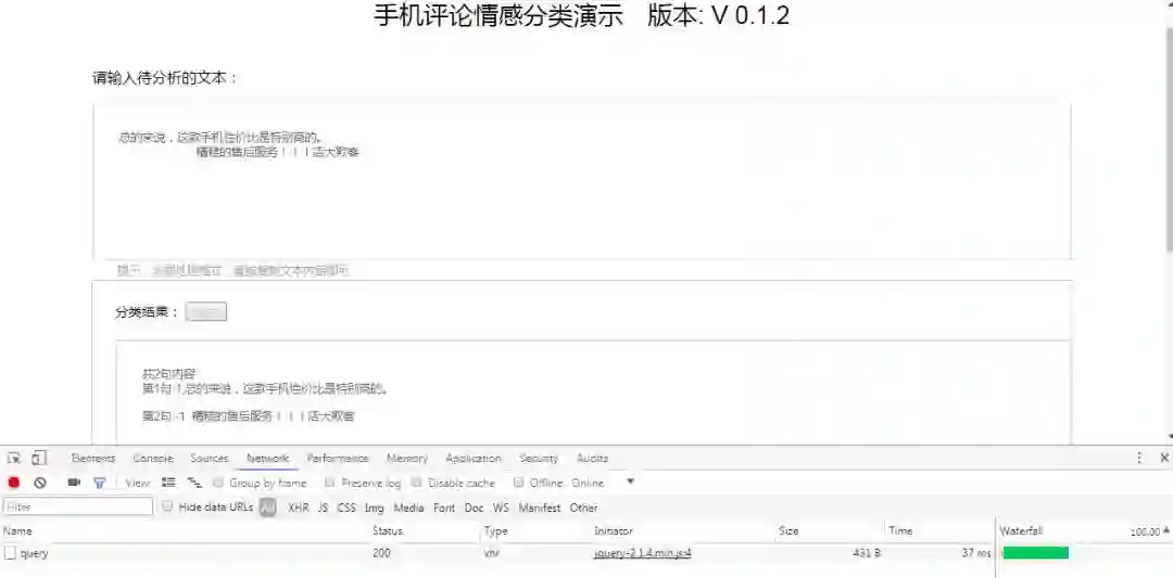 xmxoxo同学以“情感分类”(购买手机者对该手机的评论)为例子,简要说明从训练到部署的全部流程。最终完成后可以使用一个网页进行交互,实时地对输入的评论语句进行分类判断。