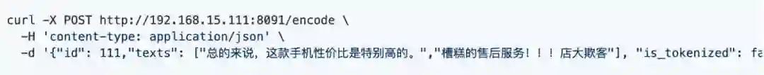 模型服务端部署完成了,可以使用curl命令来测试一下它的运行情况。