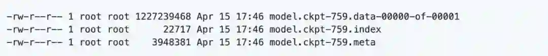 到这里我们已经训练得到了模型,但这个模型是.ckpt的文件格式,文件比较大,并且有三个文件:
