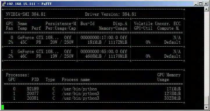 我这里的配置是2个GTX 1080 Ti,这个时候双卡的优势终于发挥出来了,GPU 1用于预测,GPU 0还可以继续训练模型。