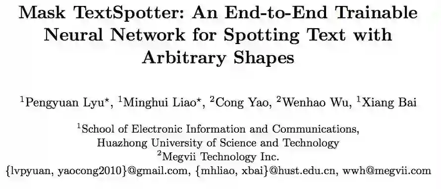 华中科技大学白翔老师团队在自然场景文本检测与识别领域成果颇丰,这篇被ECCV2018接收的论文《Mask TextSpotter: An End-to-End Trainable Neural Network for Spotting Text with Arbitrary Shapes》是其最新力作。