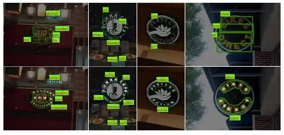 如果去除训练样本中的真实世界字符标注图像,模型依然可以达到相当竞争力的性能。下图中Ours(a)即不使用真实世界字符标注图像的训练结果。