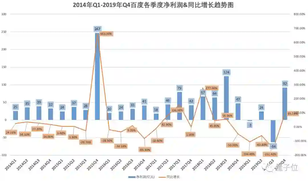 在刚刚发布的百度2019年第四季度及全年财报中,百度该季度营收289亿,净利润达92亿,同比增长95%, 双双超过华尔街预期。全年营收1074亿元,连续三个季度营收超过华尔街预期。