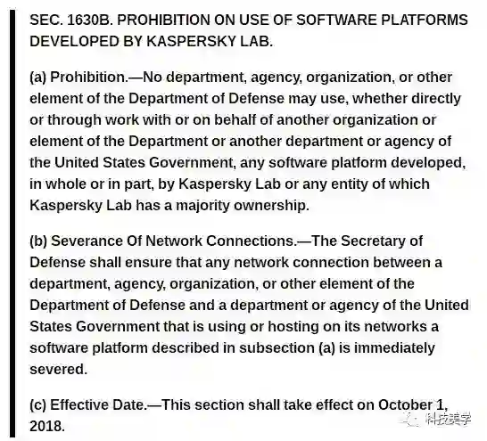说白了美国觉得卡巴斯基软件中所携带的所谓的后门可能会影响国家安全,所以不让用了。卡巴斯基方面当然是一致否认,卡巴斯基CEO也否认与俄罗斯政府的任何关系。