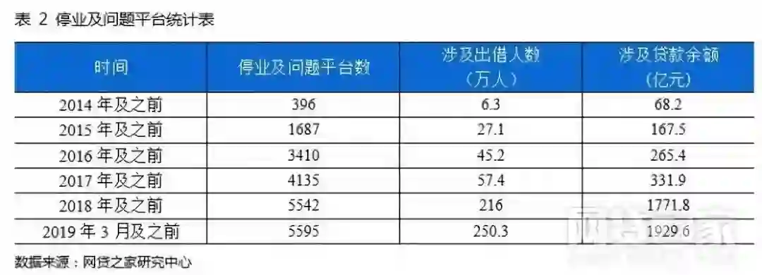 3月继续没有新上线平台,截至2019年3月底,累计停业及问题平台数量达到了5595家,P2P网贷行业累计平台数量达到6616家(含停业及问题平台)。因此,目前P2P正常运营平台数量仅占累计平台数量15%。