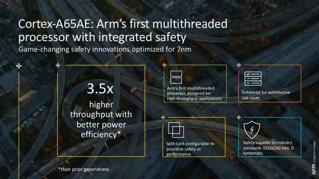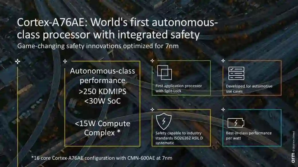 2018年9月,Arm推出首款集成功能安全的自动驾驶级处理器 Cortex-A76AE,专为汽车行业设计。该芯片搭载分核-锁步(Split-Lock)技术,是一款具有颠覆性的安全创新,并首次在应用处理器中得以实现。