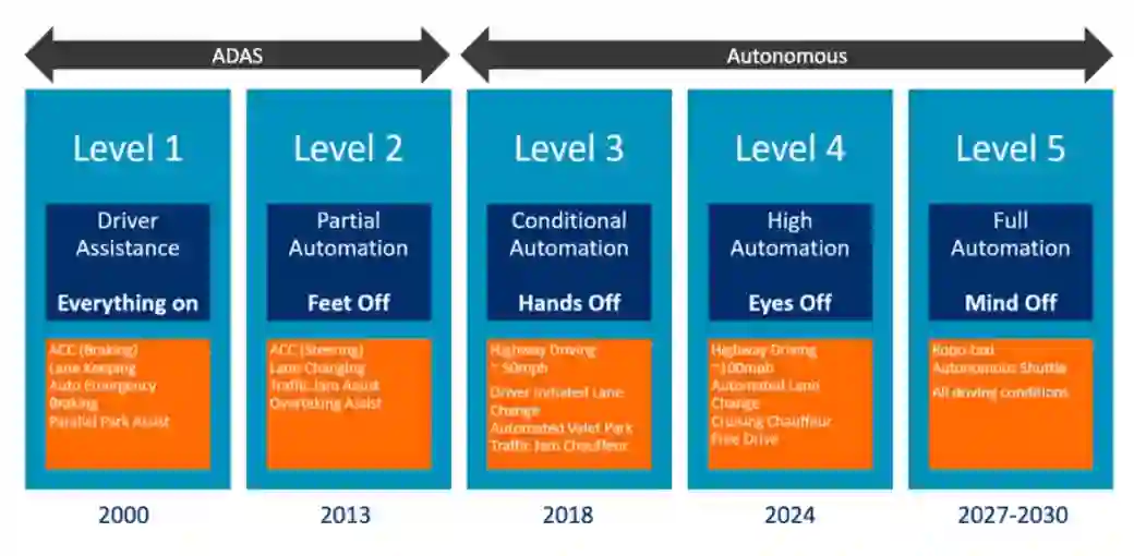 如上图所示,L3级是从ADAS迈向全自动驾驶的第一步,它代表了在条件许可的情况下,车辆可以完成所有的驾驶动作,并具备提醒驾驶者功能。驾驶者无需监控驾驶环境,可以分心,但不可以睡觉,需要随时能够接管车辆,以便随时应对可能出现的人工智能应对不了的情况。这便引发了一个有趣的现象,一旦驾驶员的手脱离了方向盘,会很愉快地处理电子邮件、文本等,使眼睛与思想也脱离了道路,一旦遇到意外,分心的驾驶员能多块地回到“方向盘”上?从责任的划分方面考虑,跳过L3级自动驾驶能够更好地判断驾驶员是在控制车辆还是车辆在进行自动驾驶。不过即使汽车制造商决定跳过L3这一阶段,从L3到L4所需要的技术复杂性也要高得多。