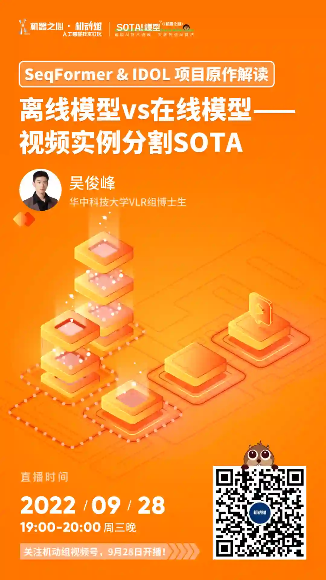 分享嘉宾:吴俊峰,华中科技大学 VLR 组博士生,指导老师为白翔教授。研究方向为计算机视觉,包括视频实例分割、目标跟踪等。目前以第一作者身份在计算机视觉顶级会议上发表多篇论文,并取得第四届 YouTube-VIS Challenge 的冠军。