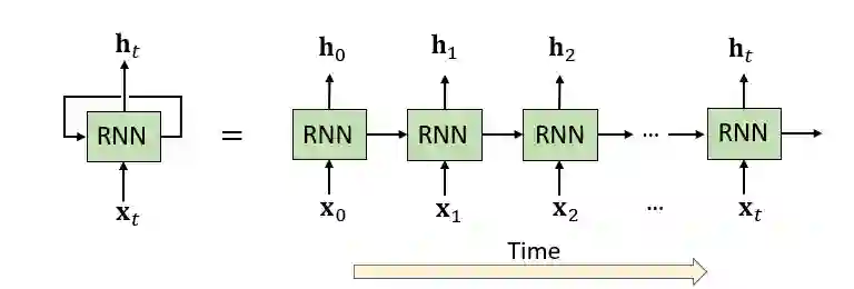 循环神经网络(Recurrent Neural Networks, 缩写RNNs),例如标准RNN、LSTM、GRU等,已经被广泛用于对时间序列数据的处理和建模,来解决许多应用问题,例如行为识别、机器翻译、手写识别等。RNN在对时域动态特性建模以及特征学习上具有强大的能力。如图1所示,在每个时间步,RNN神经元通过当前时刻的输入x_t和前一时刻的隐状态信息h_(t-1)来更新当前时刻的隐状态h_t,从而具有对历史信息的记忆性。