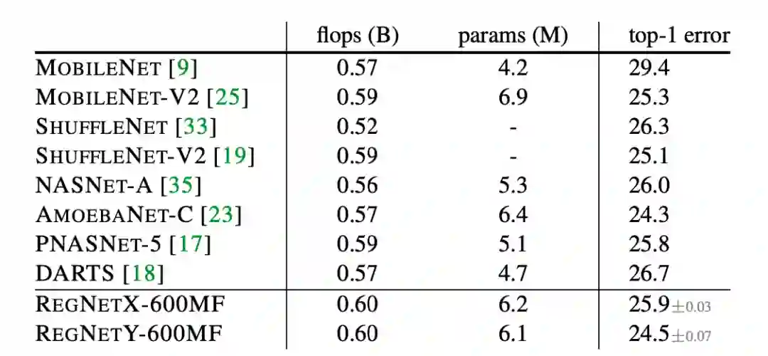 下面的Table2展示了RegNet和现有的SOTA移动端模型的性能对比,可以看到REGNET是非常有效的。