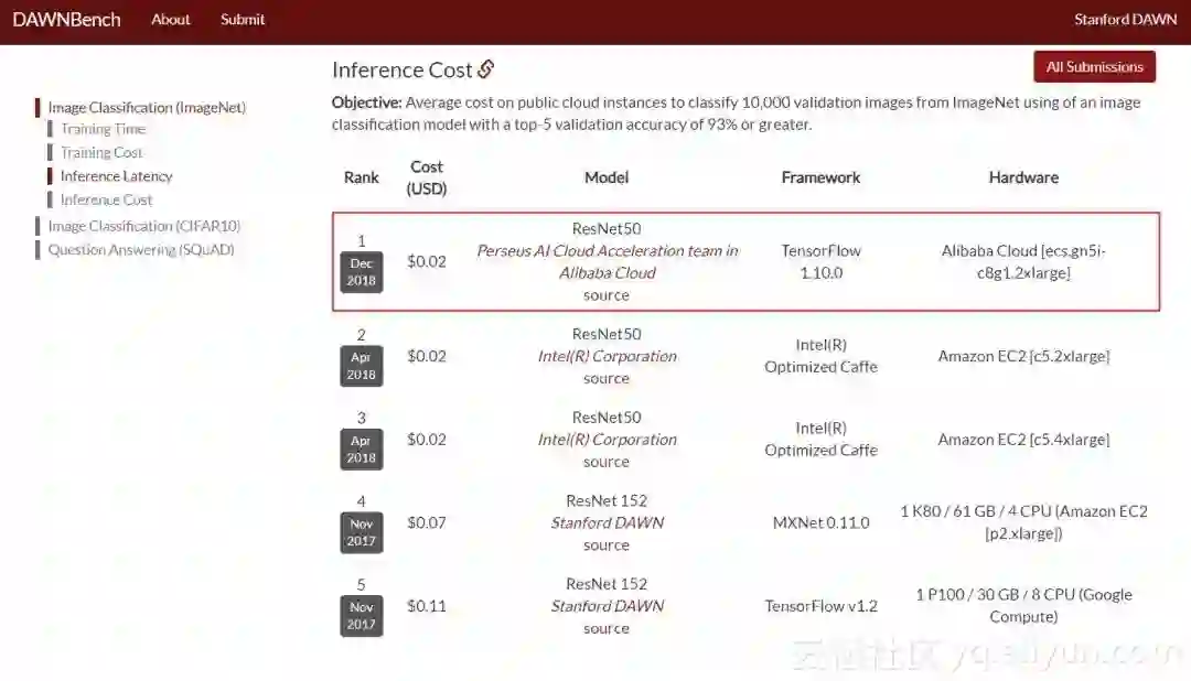 云栖君导读:2018年12月25日,斯坦福大学发布最新的DAWNbench深度学习推理榜单,阿里云获得了图像识别性能及成本双料冠军。本文将深度解读背后的技术秘密。