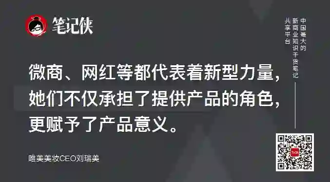传统渠道的价值正在削弱,新的渠道价值正在被提升。包括微商、网红等,都代表着新型力量,她们不仅承担了提供产品的角色,更赋予了产品意义。比如某个网红用了某件彩妆产品,画出来的妆面特别好看,然后展示给用户,这就通过场景的意义,让用户知道这件产品为什么适合她,以及怎么使用。