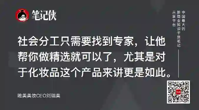 社会分工就是这样,不需要你成为各行各业的专家,你只需要找到专家,让他帮你做精选就可以了,尤其是对于化妆品这个产品来讲,更是如此。