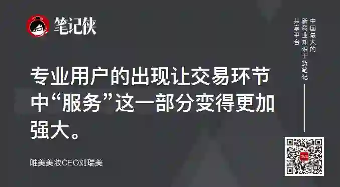 服务是渠道的构成部分,一般平台和商品零售者很难为顾客提供服务,现在专业用户的出现让交易环节中“服务”这一部分变得更加强大。