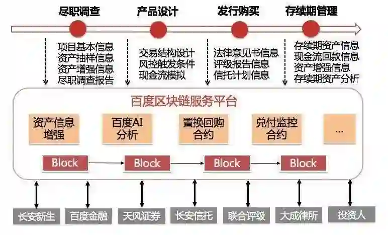 2017年5月,百度金融与佰仟租赁、华能信托等联合发行了全国首个区块链技术支持的ABS项目,发行规模达4.24亿元。百度区块链对ABS进行了六方面的改造:一是百度利用区块链“不可篡改”的特性打造了ABS平台上的“真资产”;二是基础资产的变更、替换及各参与方的信息都具有不可篡改性,对投资者及各合作方有非常高的信息透明度;三是投资者放心,加大降低企业的融资成本;四是通过百度极限事务处理系统,可以支持百万TPS的交易规模,极大降低交易成本;五是通过百度千亿级流量清洗系统,抵御大规模的网络攻击;六是通过百度安全实验室的协议攻击算法,确保协议、通信安全。