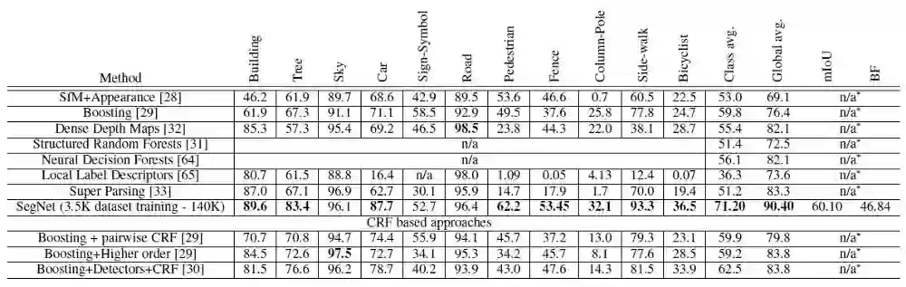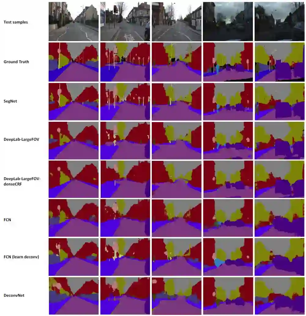 道路场景分割的CamVid数据集上,与传统方法相互比较