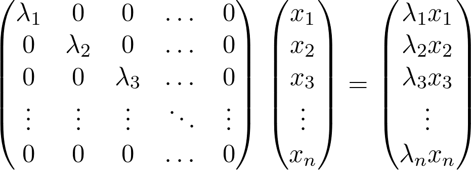 换句话说,由 A 表示的线性变换对向量 x 进行一个λ缩放,这个概念在线性代数中起着重要作用(实际上在广泛使用线性代数的每个领域都是如此)。