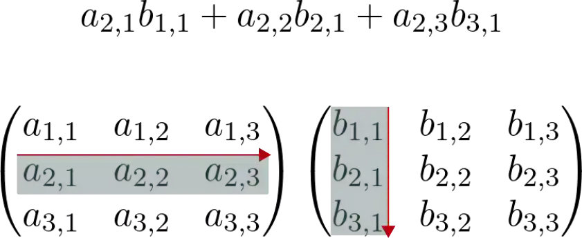 矩阵最重要的运算是矩阵乘积。通常,矩阵 A、B 以及乘积 AB 表示为: