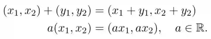 这是向量空间的原型模型。一般来说,如果可以将向量相加并将向量与实数相乘,那么这组向量 V 就是实数上的向量空间,那么以下属性成立: