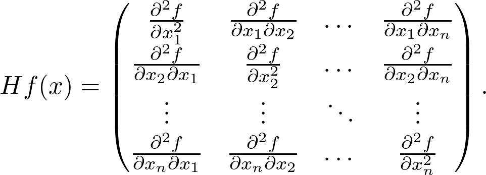 对于 n 个变量的通用可微分矢量 - 标量函数,存在 n^2 个二阶导数。形成 Hessian 矩阵。
