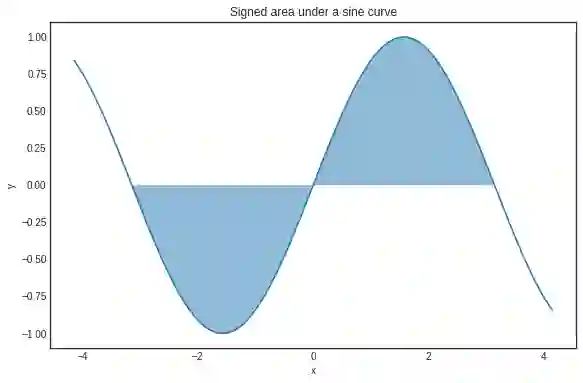 它适用于任何可积函数 f(x)。函数的积分也可以看作是曲线下的有符号面积。例如: