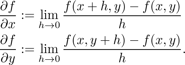 在单变量中,导数是切线的斜率。那么在此应该如何定义切线呢?表面上的一个点处不只有一条切线,而是多条。这些切线中有两条特殊的切线:分别为平行于 x-z 平面的切线和平行于 y-z 平面的切线。