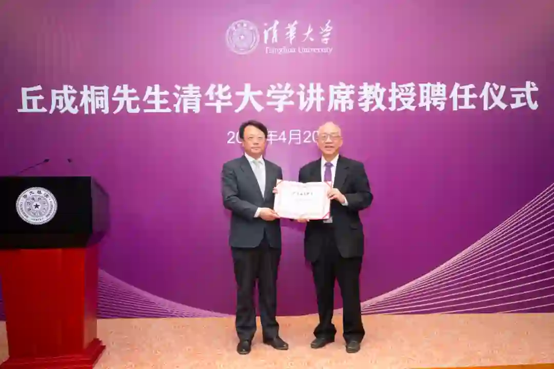 4 月 20 日上午,丘成桐清华大学讲席教授聘任仪式在清华主楼接待厅举行。