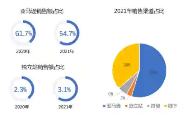安克创新最初依托于第三方平台亚马逊起家,其高颜值与高性能的产品,迅速得到了欧美市场的青睐,安克创新借助线上建立的品牌势能,迅速开拓线下市场,构建了“线上”+“线下”立体化销售模式,代表我国品牌出海的典型模式之一。