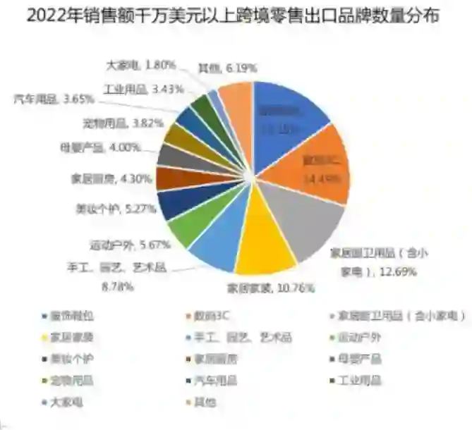 以中国为例,根据对十四个跨境零售出口品类的测算,年销售超过1000万美元的中国出海品牌或超2200个,其中超过5000万美元的头部品牌超过230个。