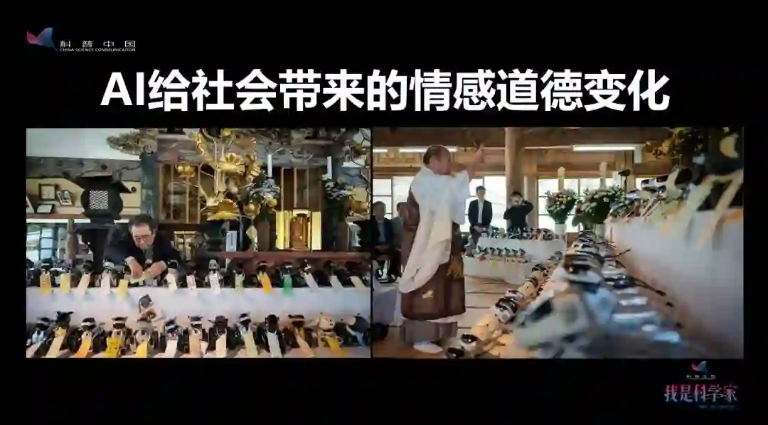 这个例子来自日本,大概在今年春天的时候,很多家庭用的小机器狗正式地退役或者说正式死亡了。很多主人把他们的机器狗放在庙里,请和尚或者法师做了一场所谓的葬礼,代表着人们对机器的关怀。在未来,我们和机器之间的关系可能也需要有情感的融入。