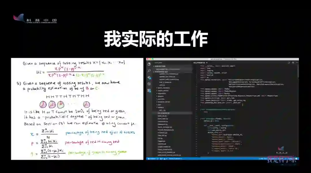 我在剧组的工作是要告诉演人工智能科学家的演员老师,人工智能科学家应该怎么演,我去了剧组聊了整个一上午,最后大家也没有对怎么演这个事情达成一个统一的建议,结果倒是我拿去的好多paper(论文)和草稿纸,当成了道具背景。