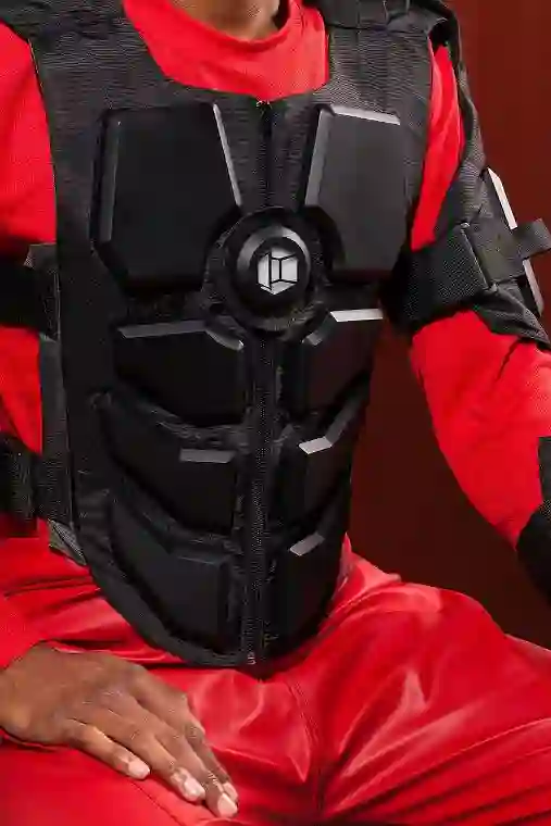Hardlight 的尼龙和塑料马甲可以与包括 Holopoint 和 Sairento VR 在内的超过 15 个游戏连接起来。动作捕捉传感器可以感测到你做出的“躲避”动作,而 12 个振荡器则可以为你带来从“被拳头蹭一下”到“肚子上被踢了一脚”的各种打击感。
