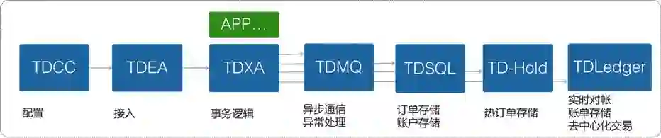 对于应用开发而言,APP(业务系统)只要对接 TDXA,就可以一步接入 TDMesh 的所有组件,实现从配置、接入、应用层事务、到订单存储、消息通信、对账等整个交易业务链的一整套标准化处理,来实现自身服务的高一致等四高要求。