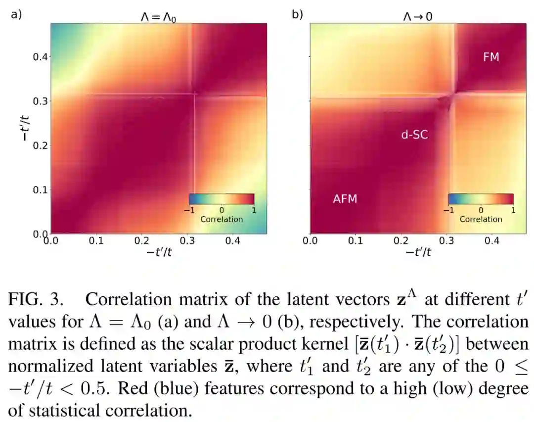 下图 3 展示了在潜在空间的 fRG 动力学过程中,三个统计上高度相关的潜在空间表示 z 作为 NODE 神经网络的学得特征。
