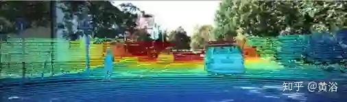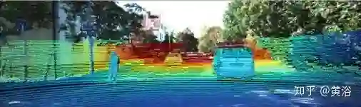 在每个像素(u,v),如果没有投射的激光雷达点,则存储投影点的逆深度值(摄像头坐标)zc或者为零。由于相比图像像素的数量大多数常见的激光雷达传感器仅提供少量测量数据,因此深度图像非常稀疏。为了对付这种稀疏性,在输入深度图使用最大值池化(Max Pooling)对投影的激光雷达深度点上采样。