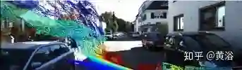 RegNet应该是第一个深度卷积神经网络(CNN)推断多传感器的6自由度(DOF)外参数标定,即激光雷达(LiDAR)和单目摄像头。RegNet将标定的三个步骤(特征提取、特征匹配和全局回归)映射到单个实时CNN模型中。在训练期间,随机对系统进行重新调整,以便训练RegNet推断出激光雷达投影到摄像头的深度测量与RGB图像之间的对应关系,并最终回归标定外参数。此外,通过迭代执行多个CNN,在不同程度失标定(decalibration)数据上进行训练。如图是一个例子。