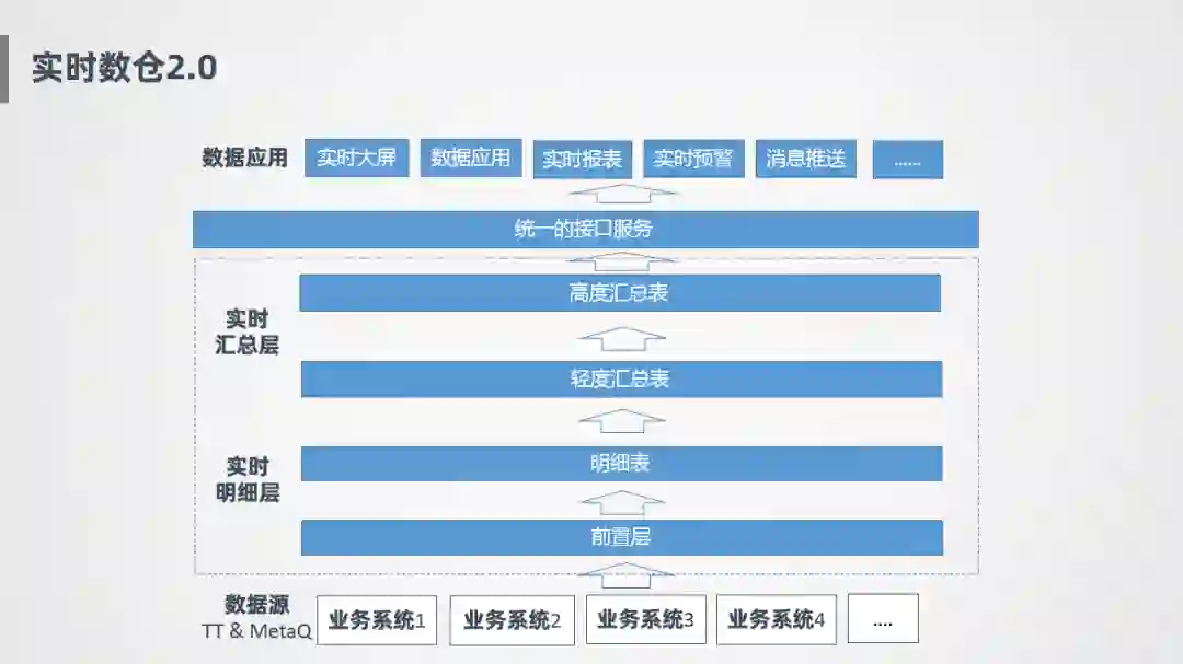汇总层:明细层之上会有轻度汇总和高度汇总,轻度汇总表维度非常多,主要写入到OLAP引擎中供多维查询分析,高度汇总指标主要针对实时大屏场景进行沉淀。