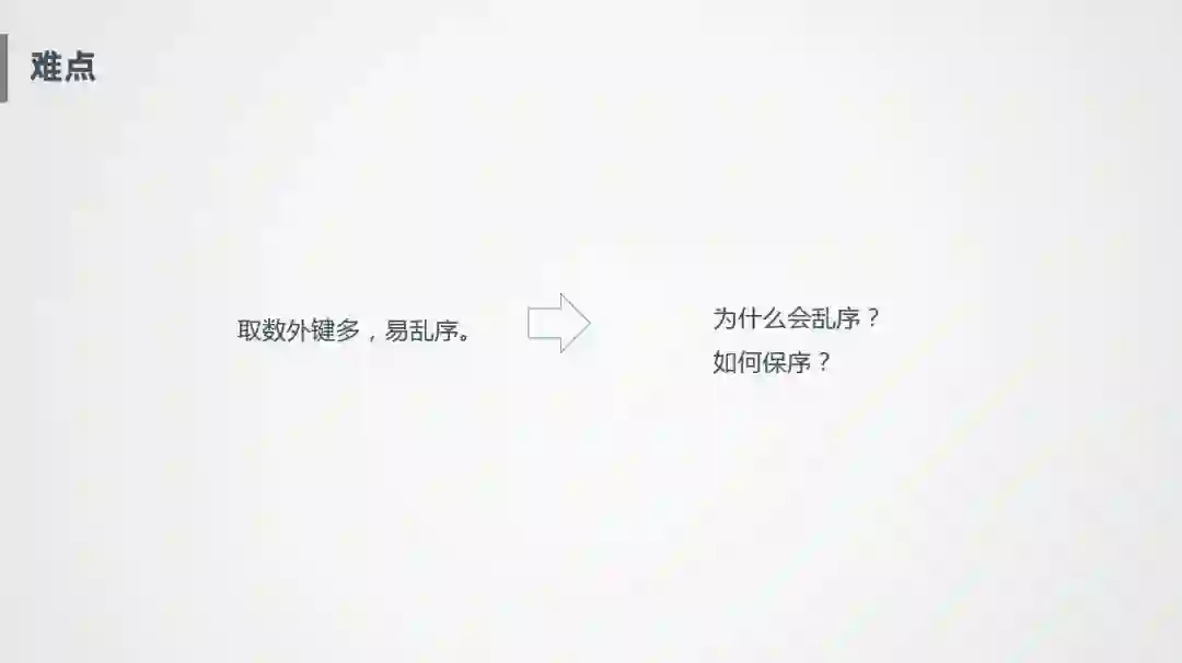 第三个是取数外键多,乱序的问题,乱序其实有很多种,采集系统采集过来就是乱序的,或者传输过程中导致的乱序,我们这边要讨论的是,在实际开发过程中不小心导致的乱序,因为其他层面的东西平台已经帮我们考虑好了,提供了很好的端到端的一致性保证。