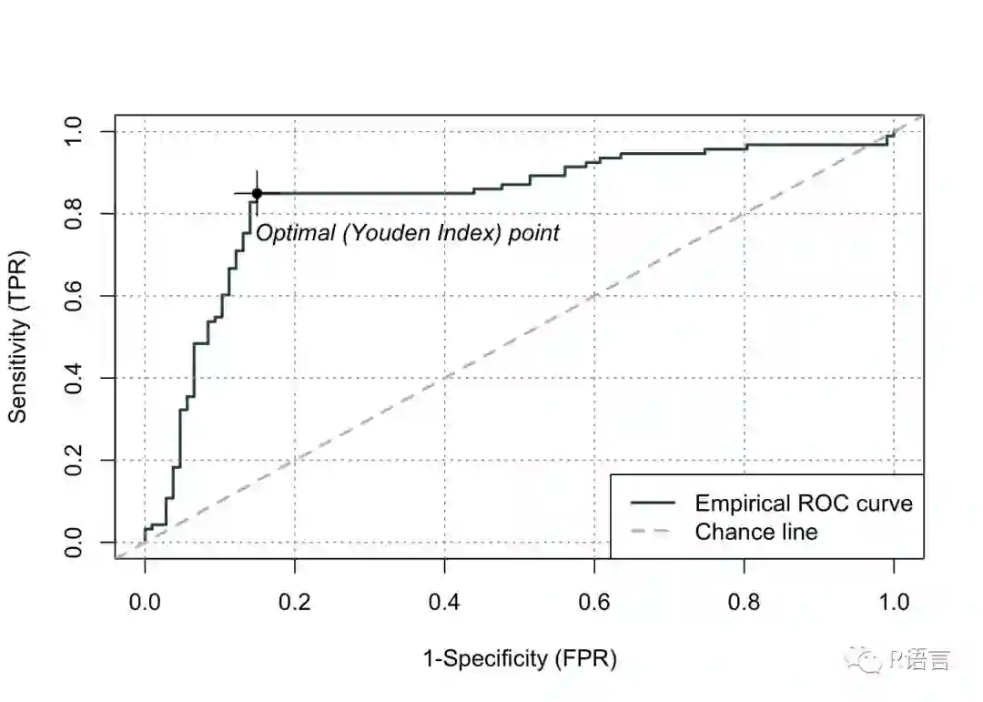 ROCit是一种用于绘制ROC曲线和其他二元分类可视化的新工具,它在1月份迅速蹿红,并继续流行。如果我通过下载自动过滤原始搜索,就永远不会发现它。默认的图包括Yourden’s J Statistic数据的位置。