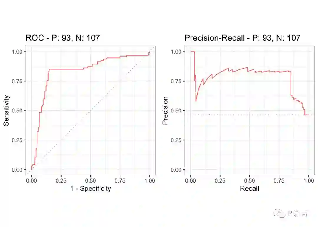 precrec是另一个绘制ROC和precision-recall曲线的库。