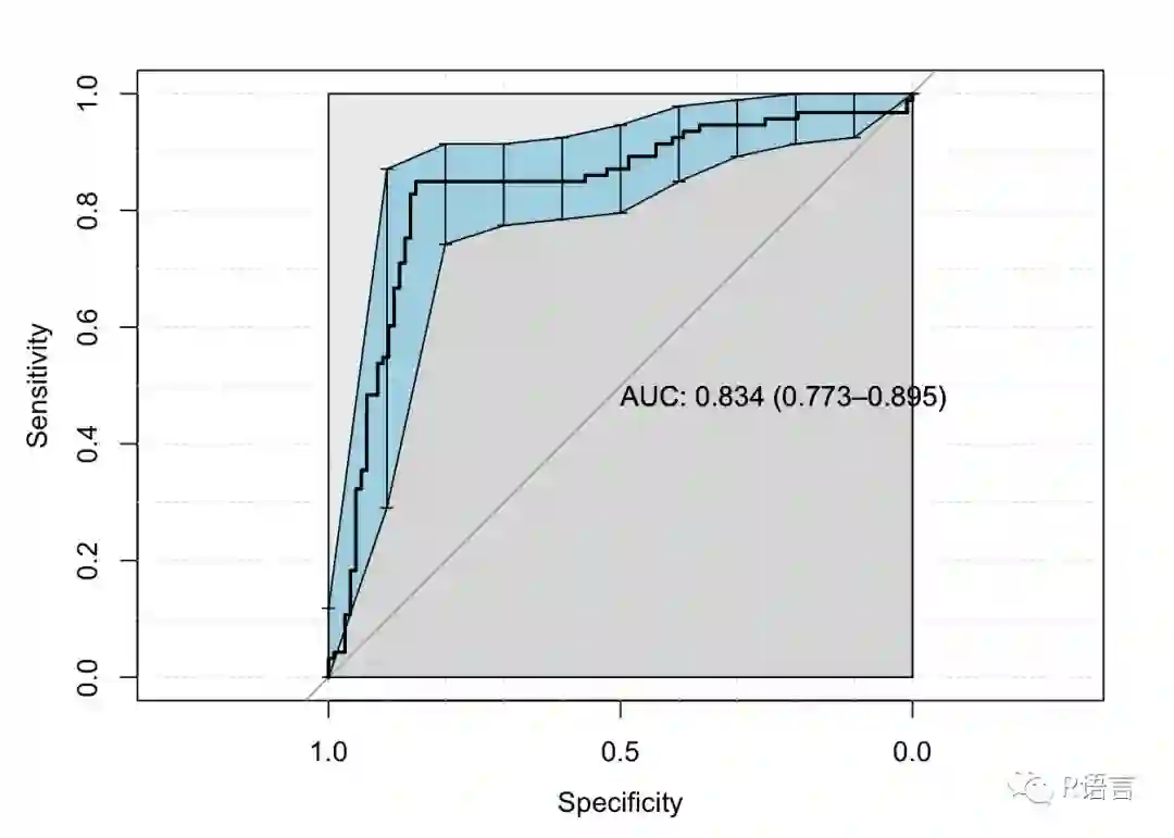 从下载曲线可以明显看出,pROC也很受数据科学家的欢迎。我喜欢它是因为很容易得到AUC的置信区间。